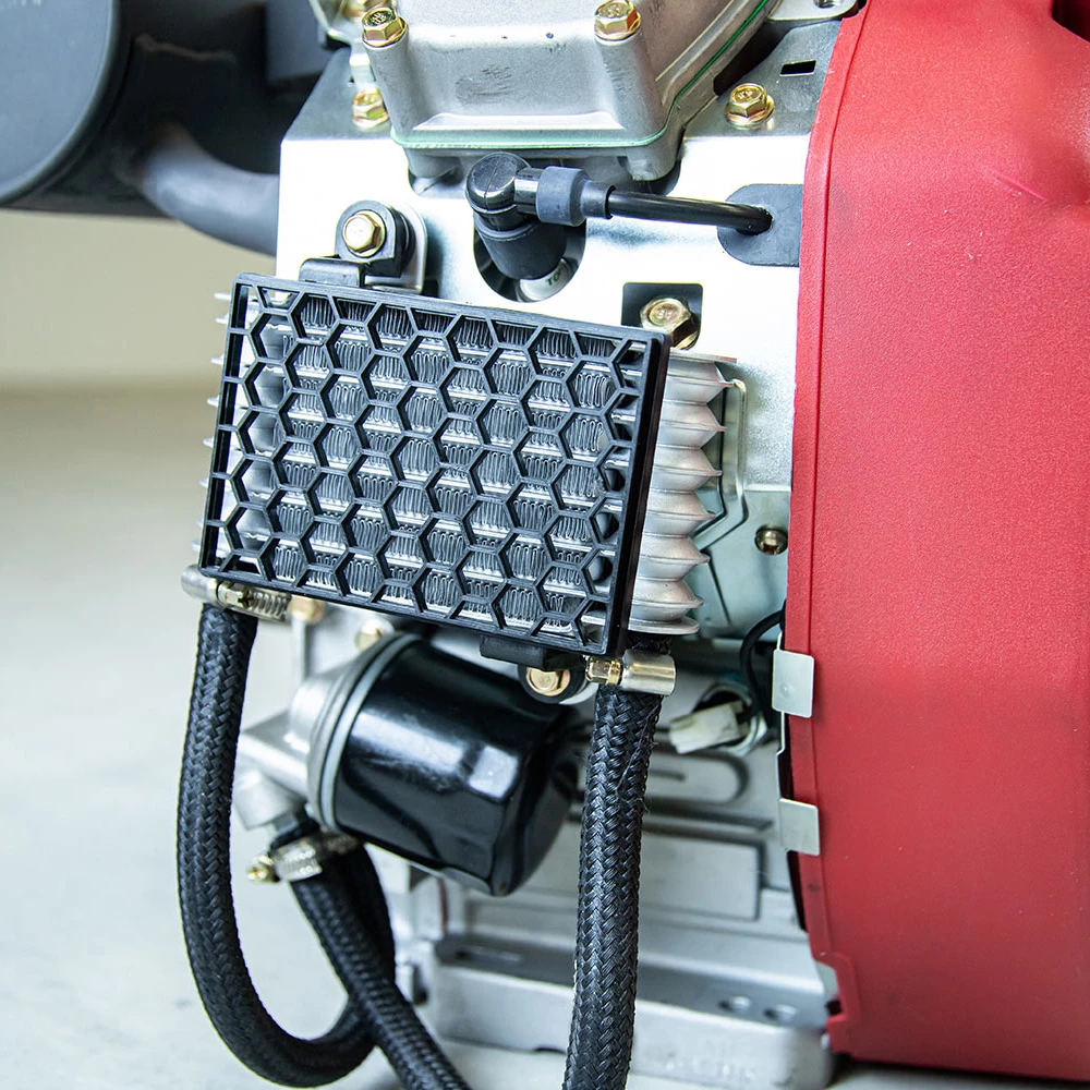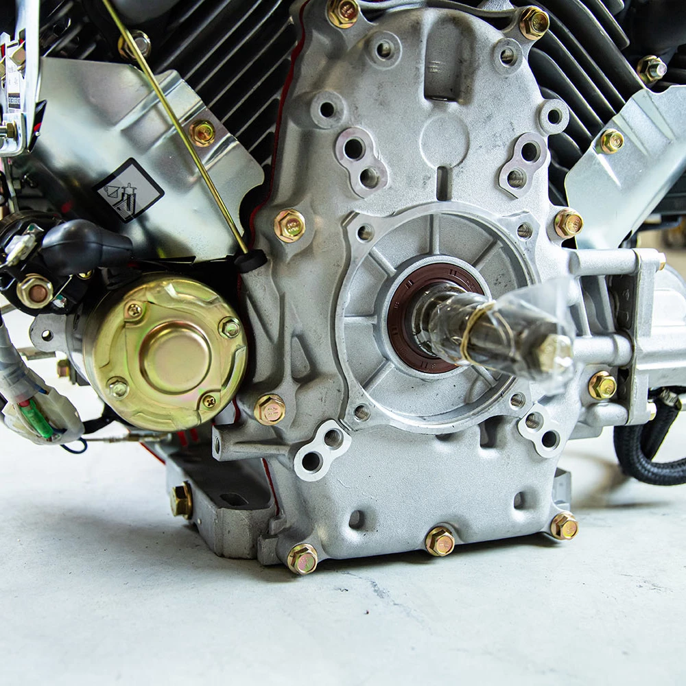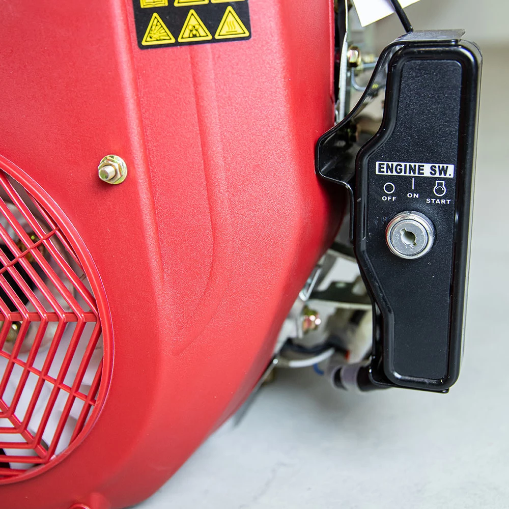 Elstartad och driftsäker tvåcylindrig bensinmotor på 20 hk med oljenivåvakt för ökad driftsäkerhet. Motorn är väldigt kompakt för sin storlek för att passa på de flesta ställen.