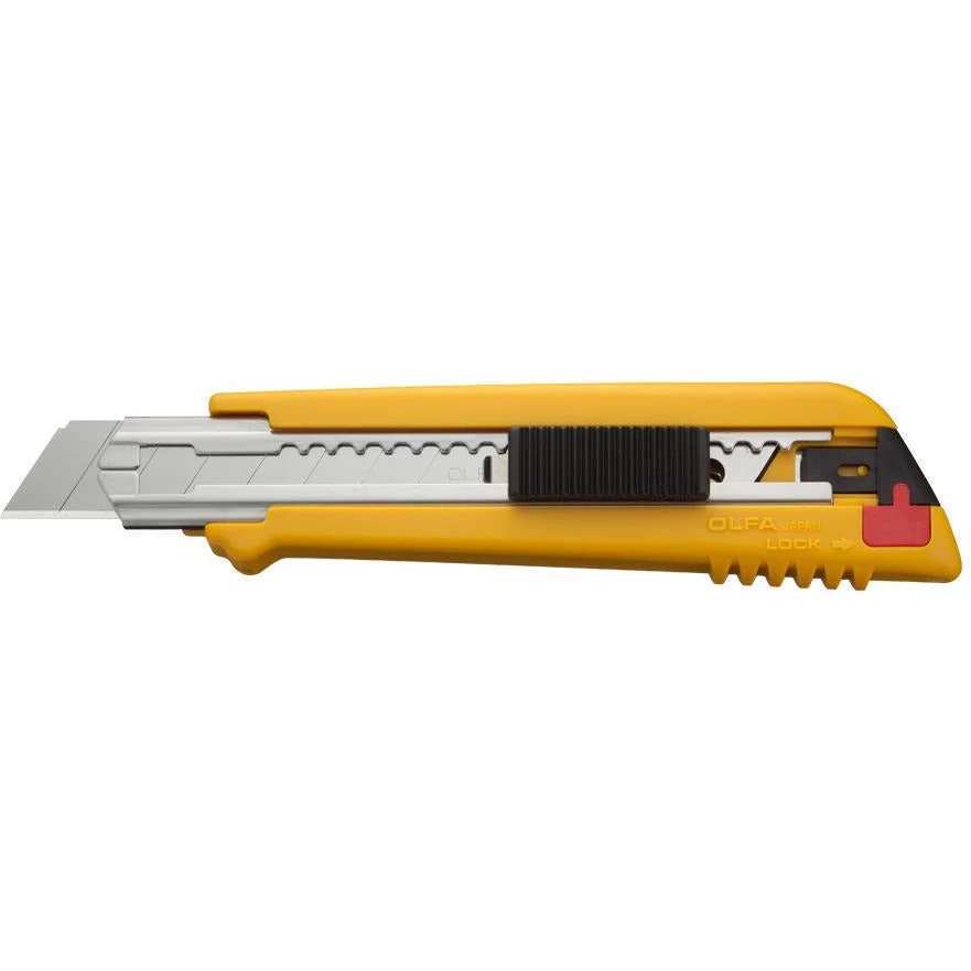 Brytbladskniv 18 mm. Automatiskt bladbyte. Levereras med 3 rostfria blad i magasinet. OLFA PL-1 med magasin för upp till 6 st LB brytblad.