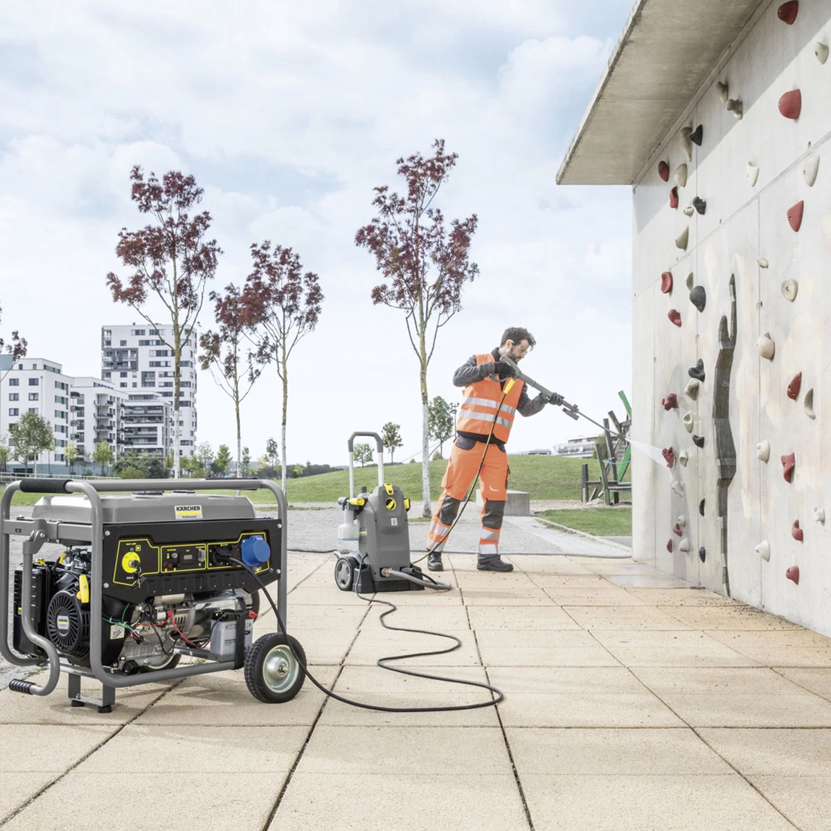 Praktiska utrustningsdetaljer, som skydd mot överbelastning och låg oljenivå, samt en robust stålrörsram skyddar användare och maskin mot eventuella risker och skador.