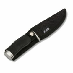 Prisvärd kniv med handtag i greppvänligt svart gummi. Knivblad i satinfinish med rostfritt 420-stål. Ordentlig parerstång för säkert grepp.