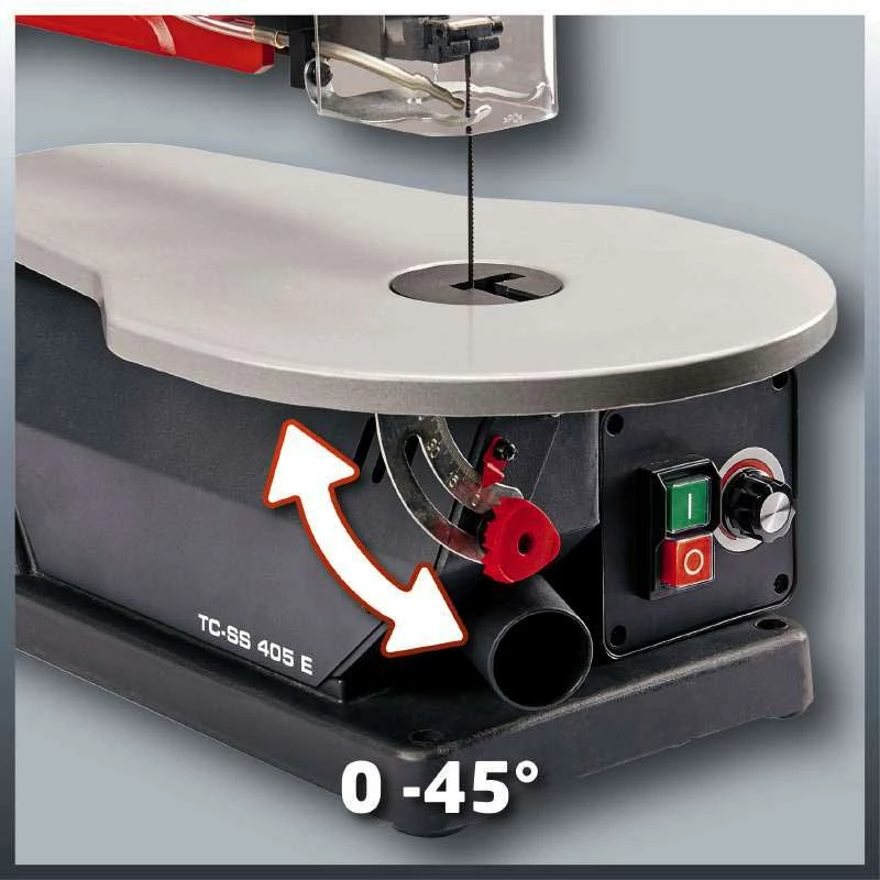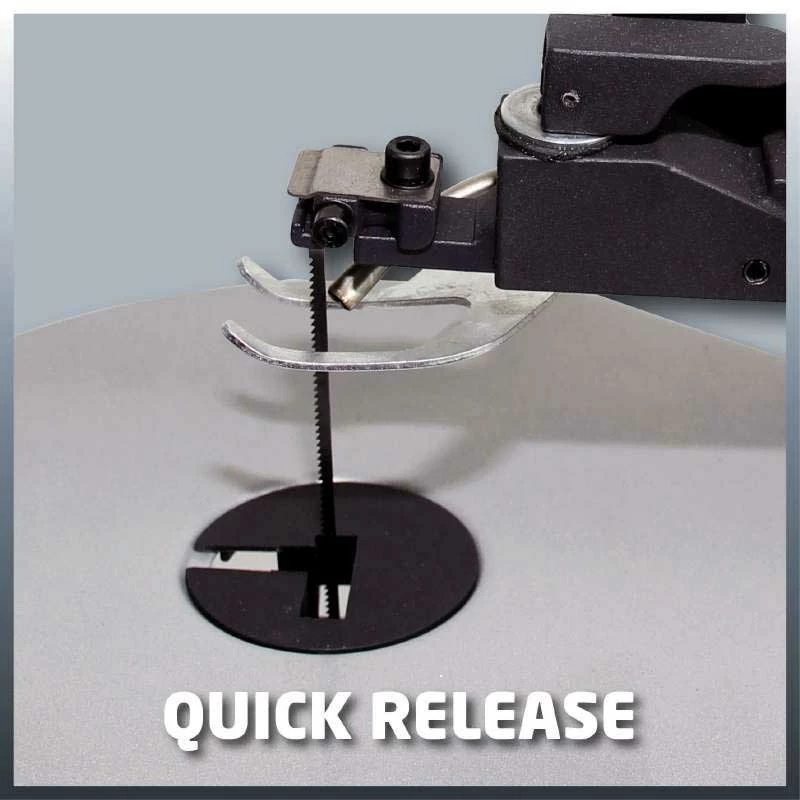 Kontursåg som används för att bygga modeller och utföra andra precisionssågjobb. Bladhastigheten är elektroniskt styrd för att få ett resultat med hög precision. Blåsanordningen håller arbetsstycket fritt från spån vilket gör det lättare att skära exakt längs den markerade linjen.