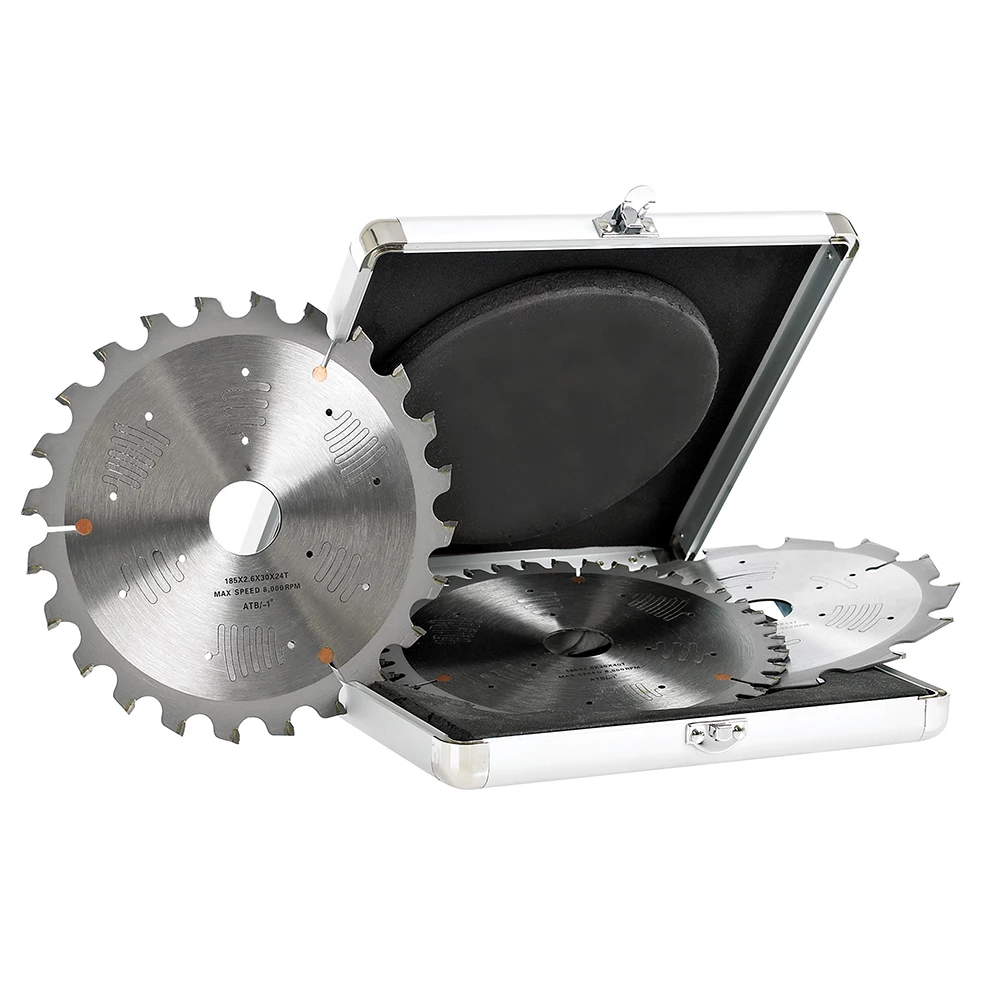 Praktiskt cirkelsågbladset i aluminiumlåda.